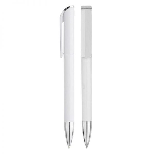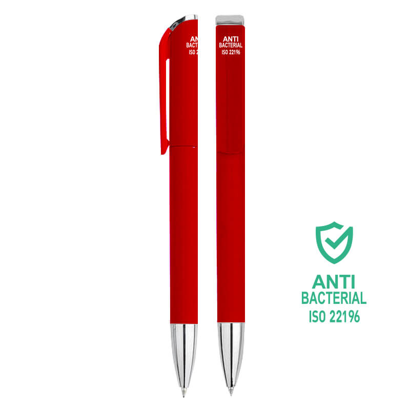 Bolígrafo fabricado en ABS y tratado con iones de plata para inhibir y evitar el proliferamiento de bacterias en su cuerpo.