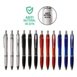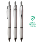 - Bolígrafo fabricado en ABS y tratado con iones de plata para inhibir y evitar el proliferamiento de bacterias en su cuerpo.