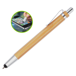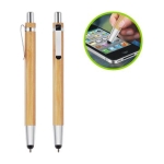 Bolígrafo de Madera de Bambú, con clip metálico y Puntero Touch-Screen. Escritura azul.