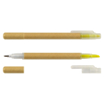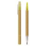 Bolígrafo Ecológico de Cartón Reciclado con terminales de plástico PET biodegradable traslúcido. Con Destacador Amarillo en la otra punta. Escritura Azul.