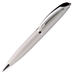 Bolígrafo Metálico blanco "Phantom", con terminales plásticos negros. Diseño simple y moderno. Escritura negra.