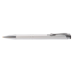 Fino bolígrafo Metálico blanco modelo "Trooper", con terminales metálicos. Diseño simple y moderno. Escritura azul.