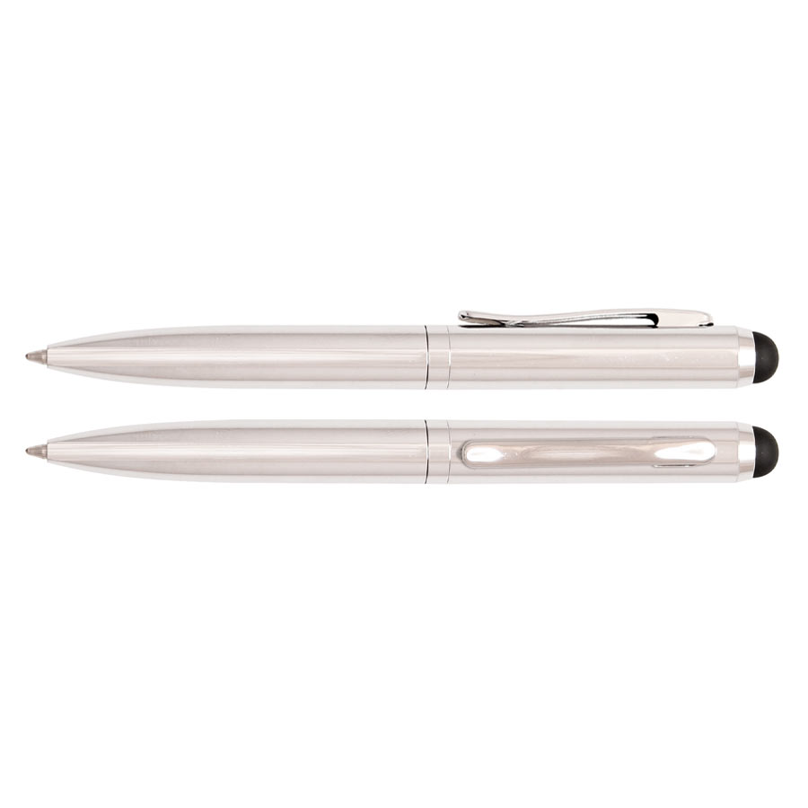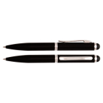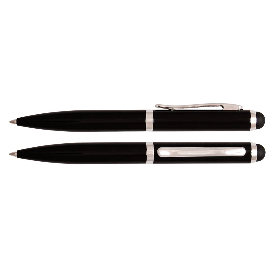 Bolígrafo Metálico modelo «Hotel», con goma posterior negra «Touch-Screen» para pantalla táctil. Escritura negra.