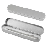 Mug térmico de acero inoxidable de doble pared aislante con tapa plástica negra y dosificador. Con conector USB y al cenicero del automóvil. Presentación en caja de cartón plateado.