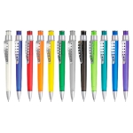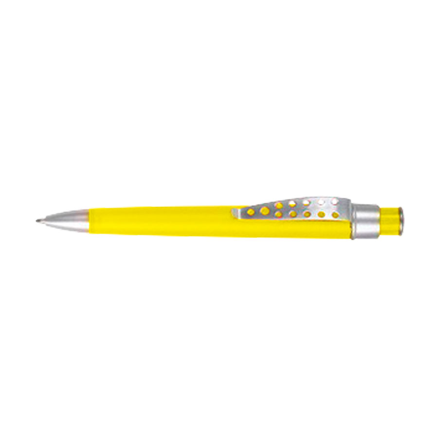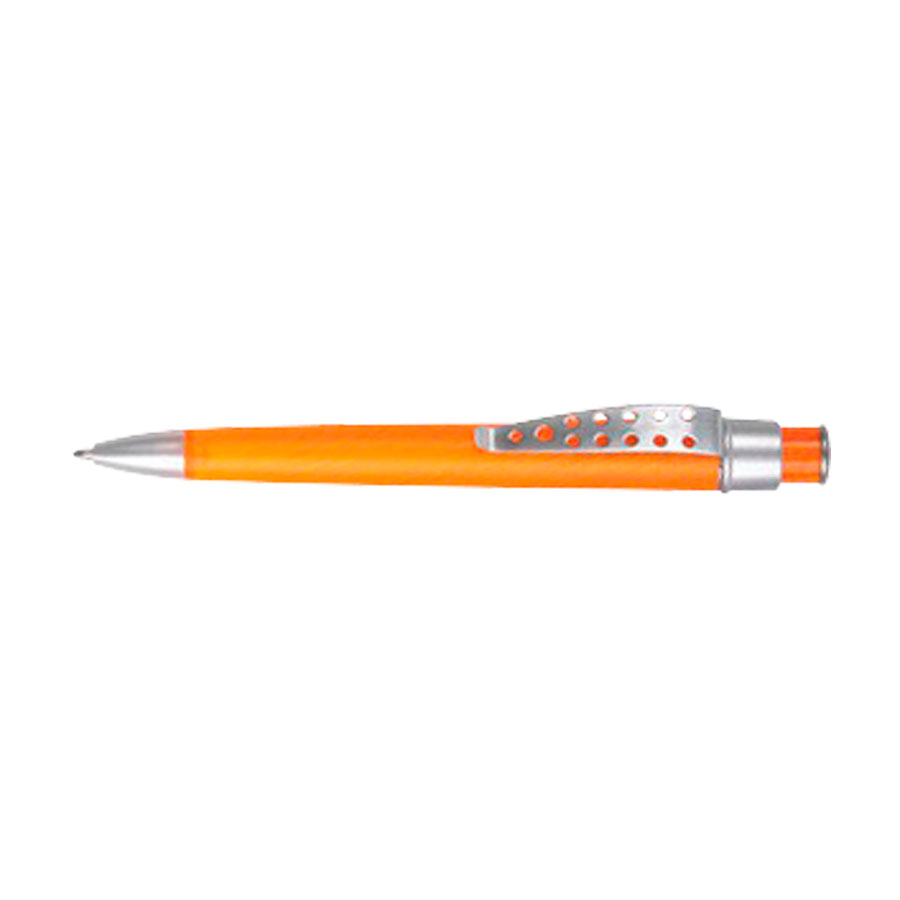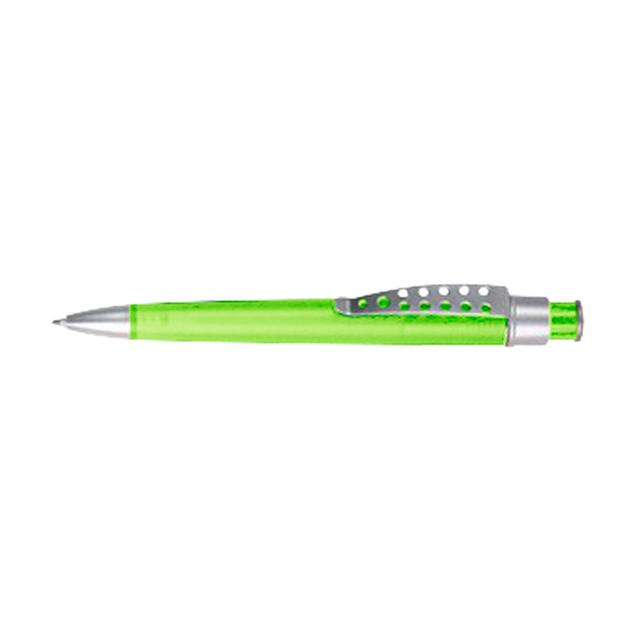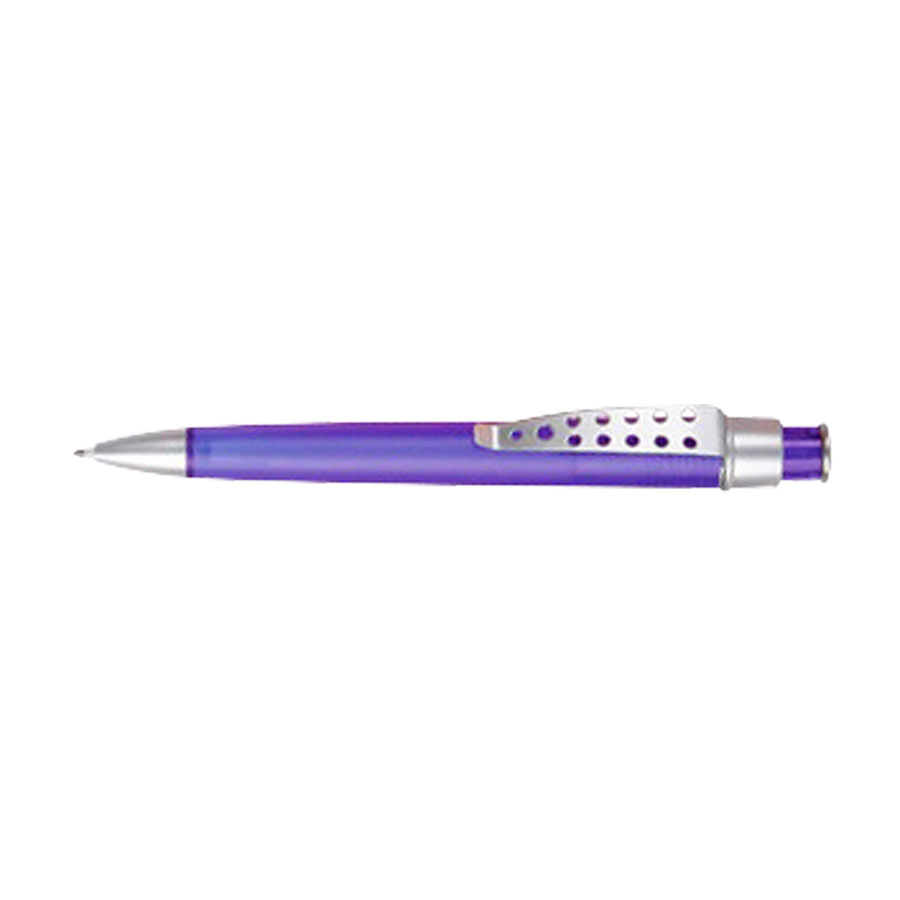 Bolígrafo plástico color frozen modelo “Evolución” con clip metálico con orificios. Escritura azul.