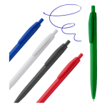 Bolígrafo plástico en diferentes colores. Presentación en bolsa plástica. Tinta azul. Diámetro 10 mm x 140 mm largo.