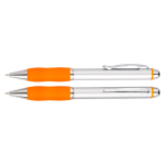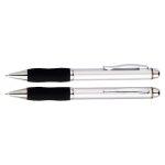 Bolígrafo "Gordito Silver" con cuerpo plateado opaco y terminales de color translúcido. El bolígrafo más vendido de Europa el año 2012. Escritura azul.