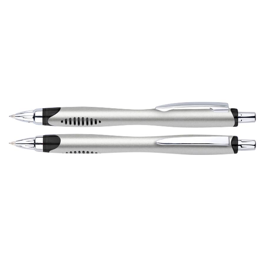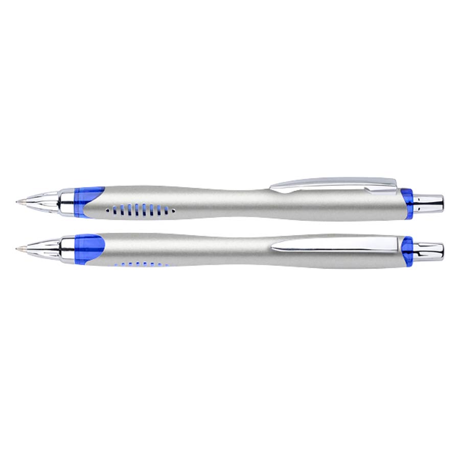 Bolígrafo plástico plateado “Motion”. Escritura Azul.