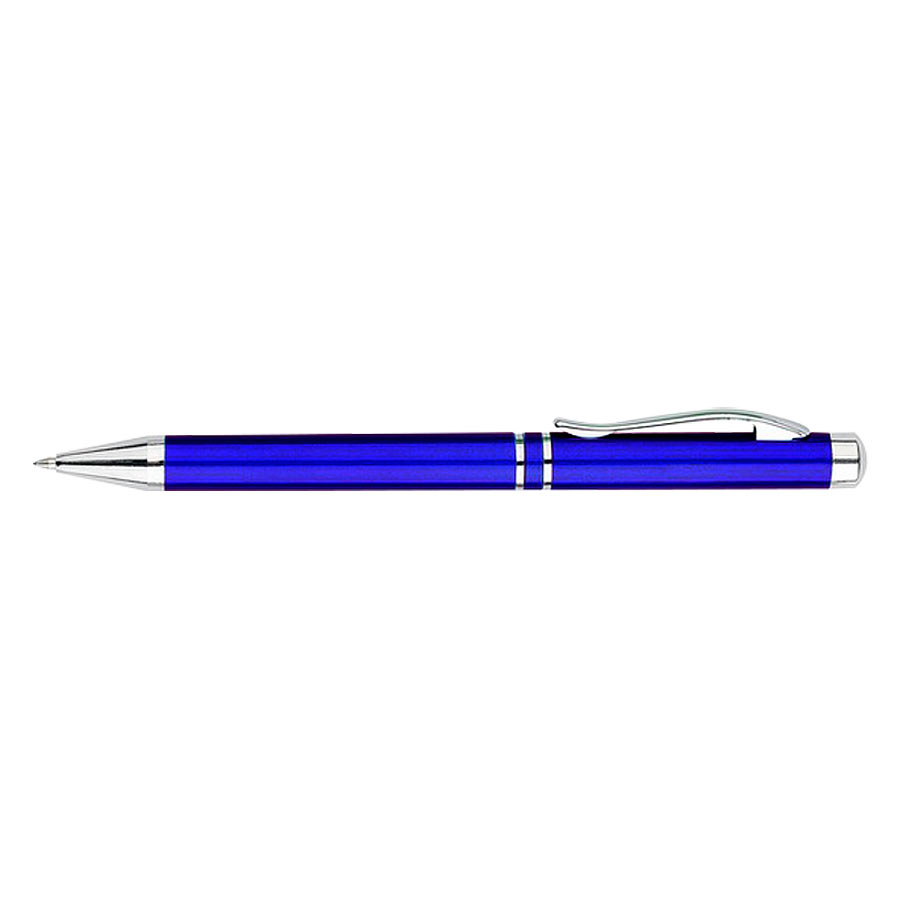 Bolígrafo plástico “Prime” con cuerpo de color metalizado. Escritura azul.