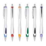 Bolígrafo plástico "Arco" con cuerpo de color metalizado. Escritura azul.
