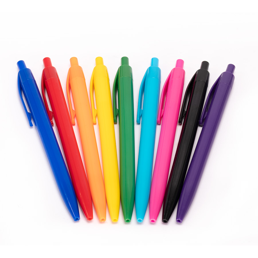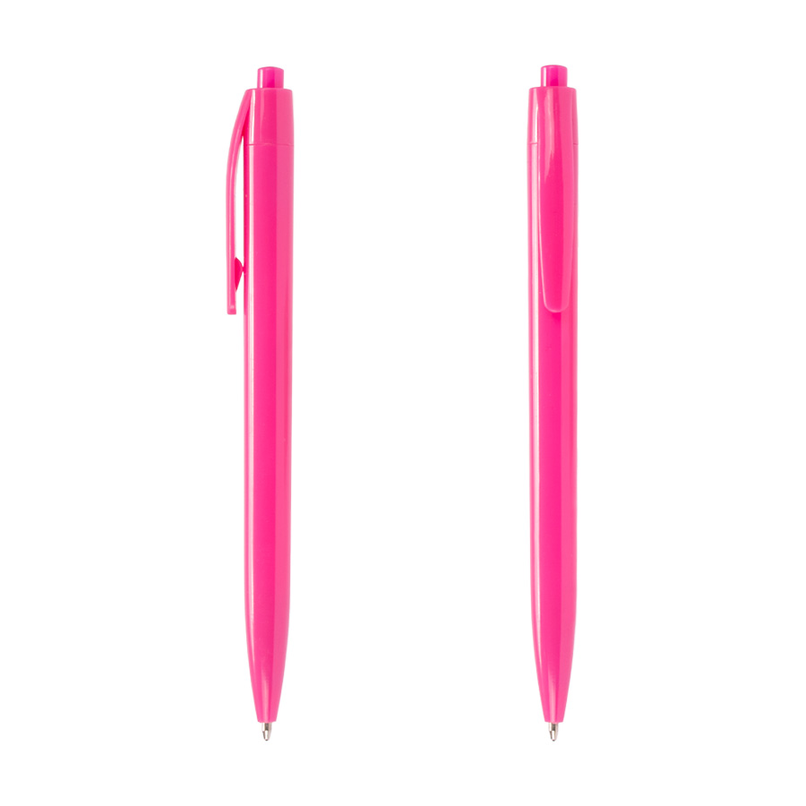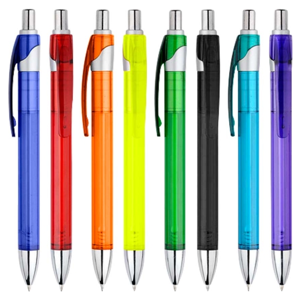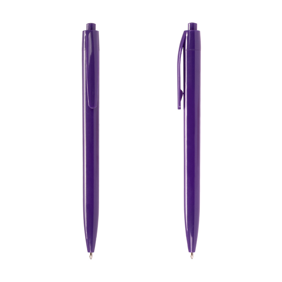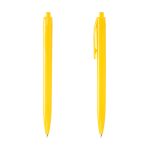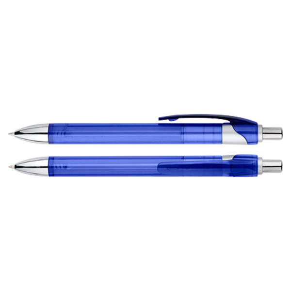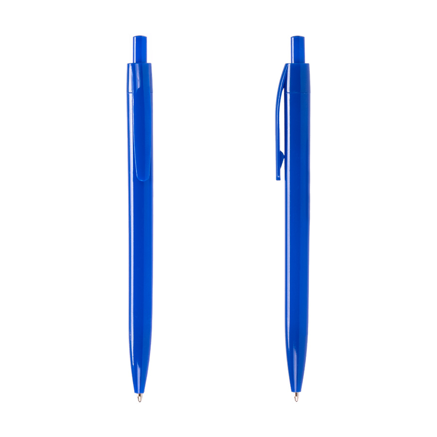 Bolígrafo "Badge" con cuerpo de color metalizado y clip cuadrado plateado, ideal para imprimir isotipos. Escritura azul.