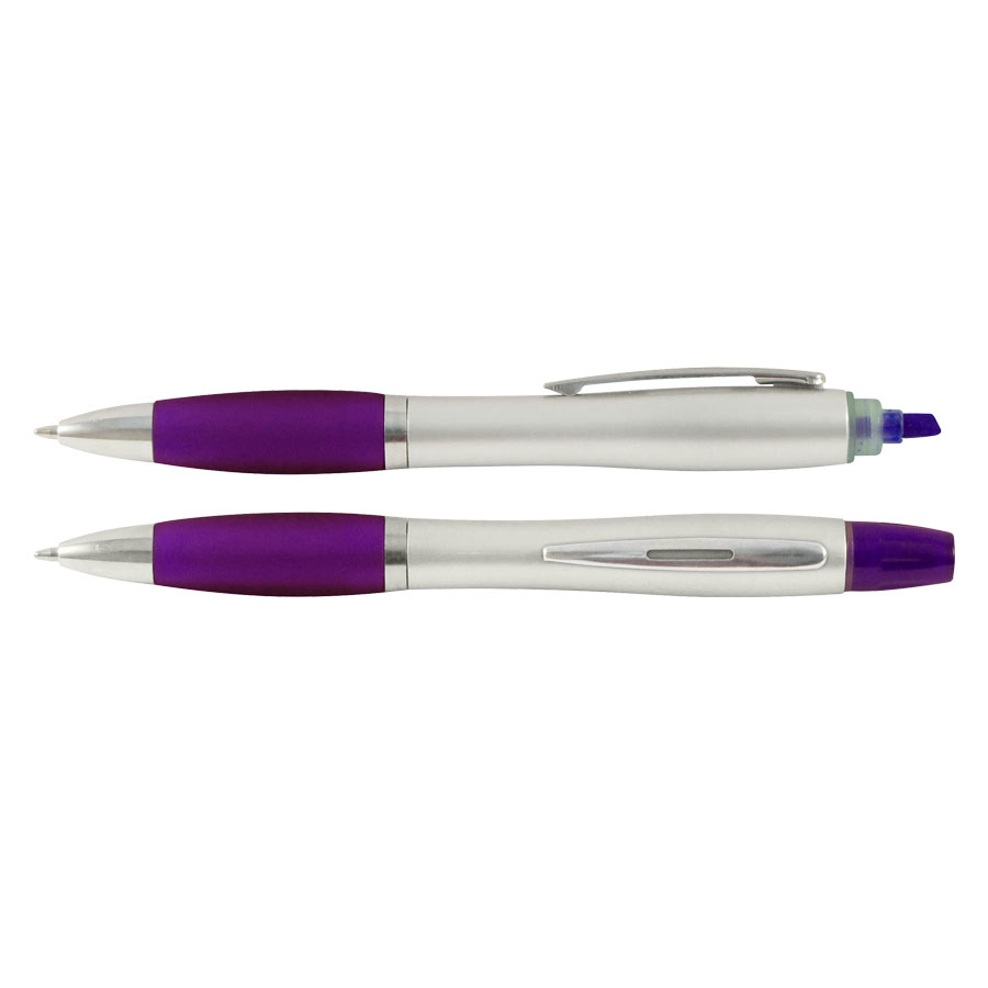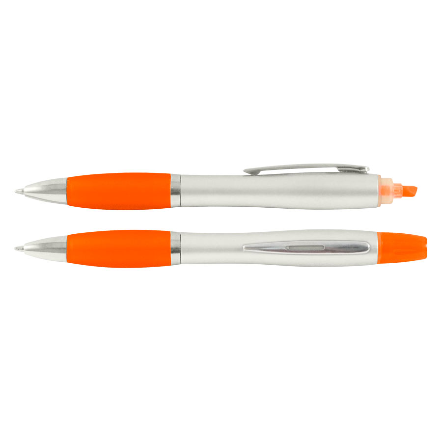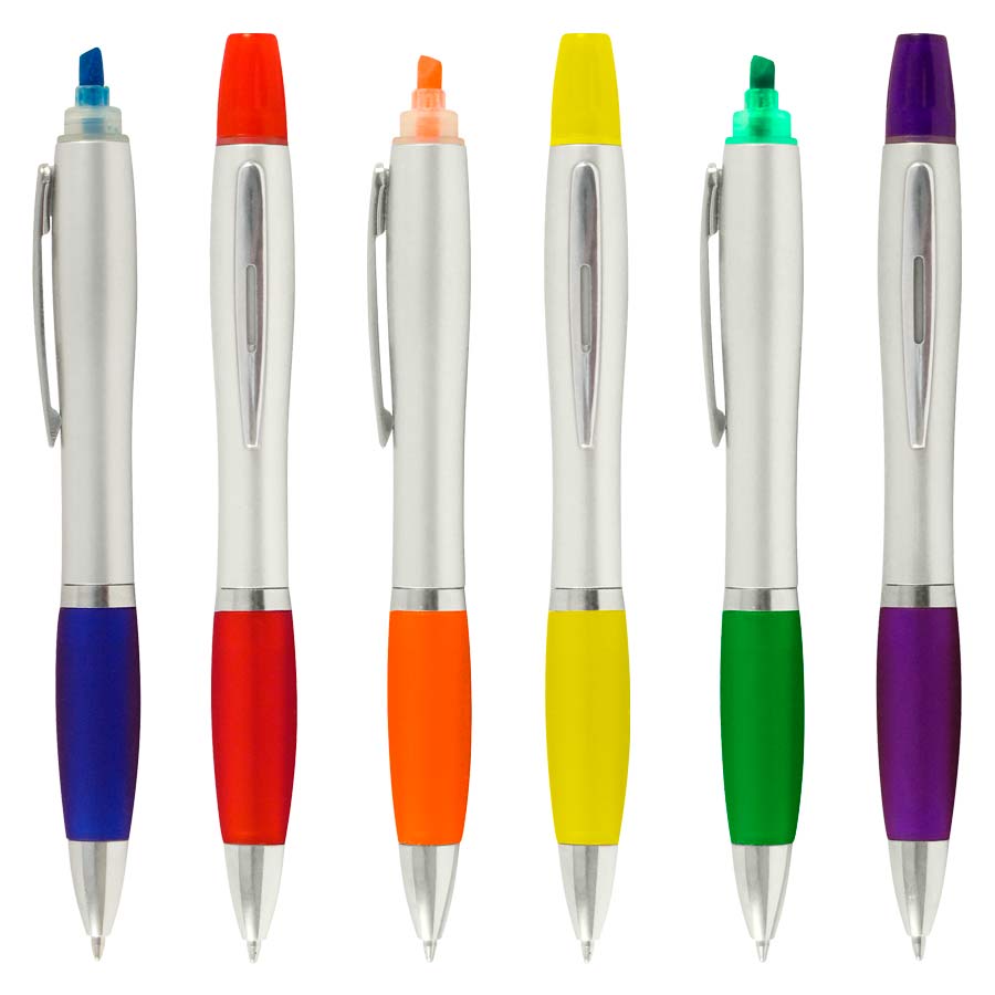 Bolígrafo Promocional “Wind Satin” con Destacador. Escritura Azul.