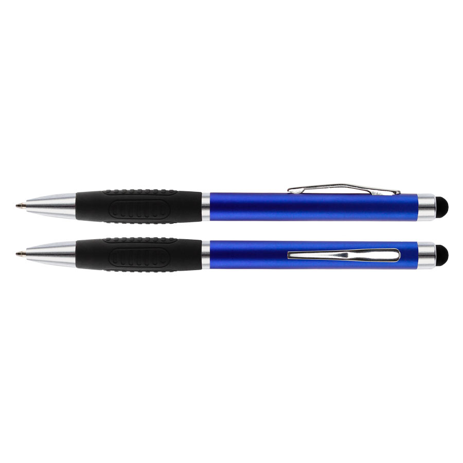 Bolígrafo «Alabama» con cuerpo de color metalizado y puntero touch-screen para pantalla táctil. Escritura azul.