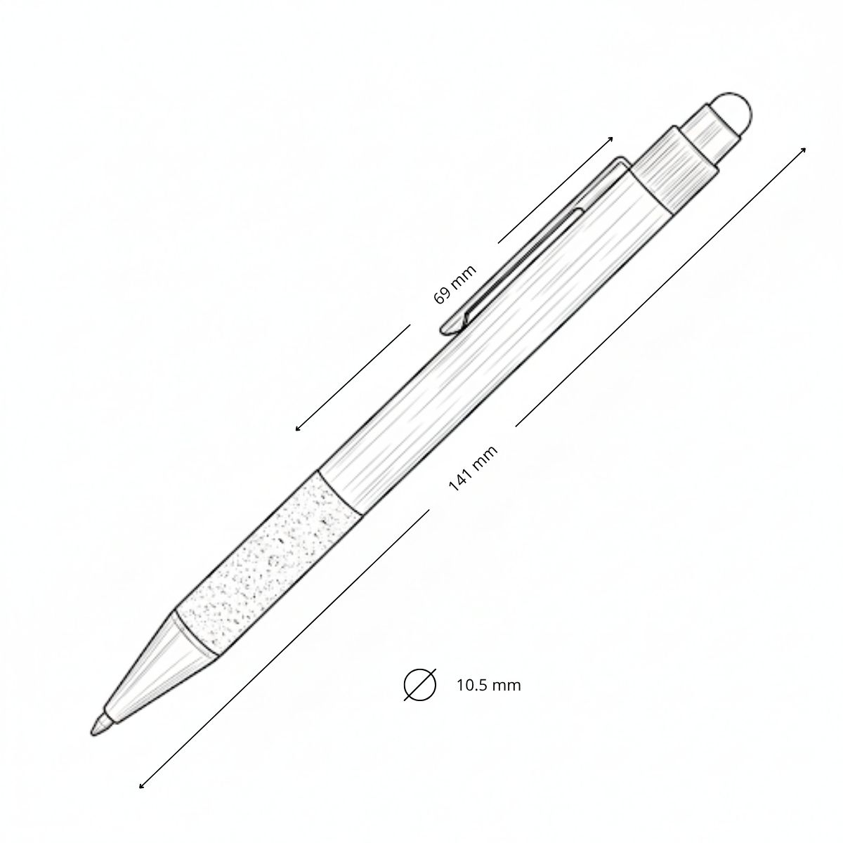 ZERMATT combina diseño moderno con una historia de impacto positivo. Fabricado con aluminio reciclado y grip de corcho natural de origen responsable, este bolígrafo refleja una opción consciente para quienes valoran el diseño y el planeta. Mecanismo de pulsador, detalles cromados y punta touch gris completan un artículo personalizable ideal para marcas que escriben el futuro con coherencia y estilo.