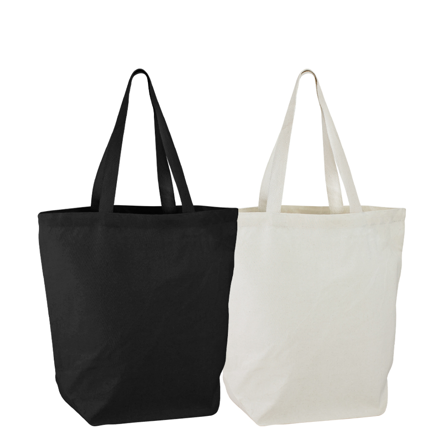 Bolsa ecológica hecha con algodón color negro y manillas planas. Presentación natural. Bolsa lavable, reutilizable y 100% biodegradable. El algodón es una de las fibras naturales más utilizadas en productos textiles.40x58x20.