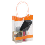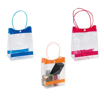 Bolsa de PVC clear con asas. Ideal para packs promocionales de punto de venta o como necessaire/cosmetiquero.Tamaño: 15 x 20 x 8 cm.