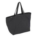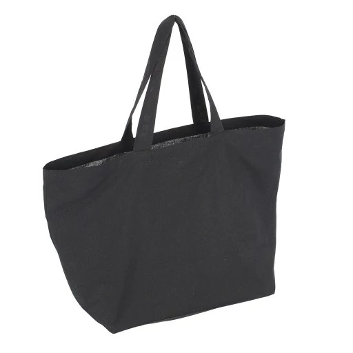 Bolsa ecológica hecha con algodón color negro y manillas planas. Presentación natural. Bolsa lavable, reutilizable y 100% biodegradable. El algodón es una de las fibras naturales más utilizadas en productos textiles.40x58x20.