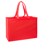 Bolsa reutilizable de Tela No Tejida (TNT) de 80 g/m2. Incluye gráfica termolaminada de Bandera chilena por el anverso y por el reverso es 100% blanca, ideal para impresión de logo. Cuenta con 2 asas de 60cm. c/u aprox.30x40x12.