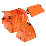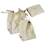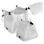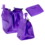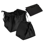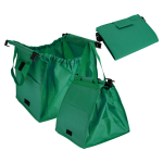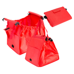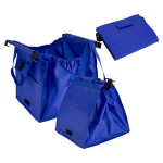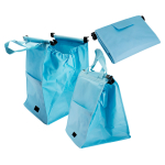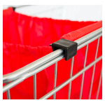 Bolsa reutilizable de tela no tejida (TNT) super-resistente de 120g/m2. Cuenta con 2 asas de 40cm. c/u aprox. Contiene 2 soportes plásticos rígidos negros, para enganchar en las paredes laterales de los carros de supermercados tradicionales. Sistema de cierre pestaña con velcro, bolsillo lateral y frontales superiores elasticados para maximizar la superficie de apertura sobre el carro. 100% plegable para fácil transporte y guardado.37x48x26.