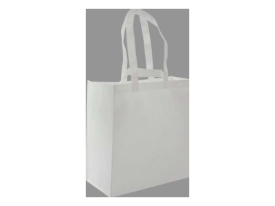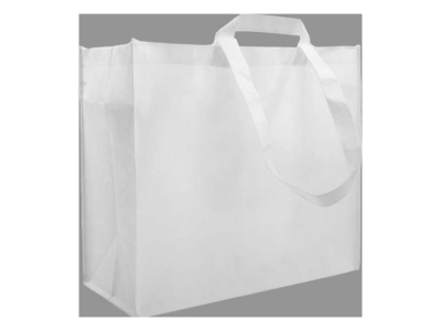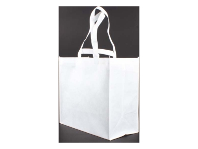 Bolsa reutilizable de tela PET no tejida de 90g/m2, modelo “Supermarket”. Con doble par de asas reforzadas, cortas (22cm c/u) y largas (66cm c/u). Ideal para Sublimación. 45 x 40 x 22 cm.(cosida)