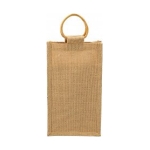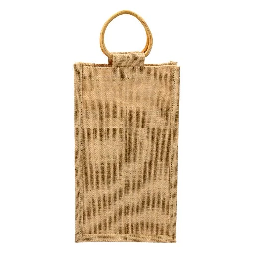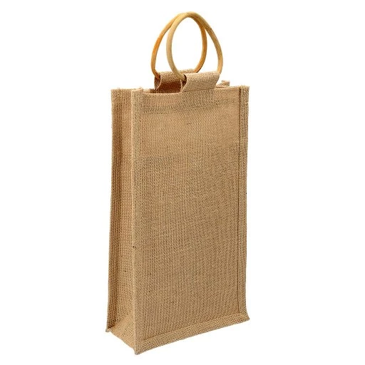 La bolsa de yute para dos botellas de vino es ideal como regalo promocional por su presentación rústica y natural, que comunica sostenibilidad y buen gusto, protegiendo a la vez las botellas con separadores y permitiendo personalización con logo para branding, siendo una opción funcional, ecológica y memorable para eventos o clientes, resaltando la marca con un toque de clase y autenticidad. El yute ofrece una estética natural y elegante que eleva el regalo, haciéndolo parecer más especial y cuidado que una bolsa de plástico.