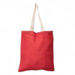 *Bolsa ecológica hecha con fibras de yute en color rojo y manillas planas de algodón crudo. Las fibras de yute entregan resistencia y durabilidad además de una presentación rústica y llamativa.40×35.
