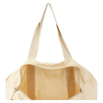 Bolsa de Canvas Algodón natural de 10 onzas, modelo «Nepal». Manillas redondas de Algodón natural de 60 x 2.5 cm. aprox. c/u. Cierre velcro interior.40x40x20 cm.