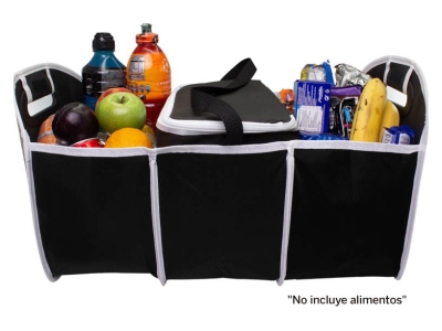 ¿Quieres tener todo organizado para tus vacaciones? Este bolso plegable es ideal para llevar gran cantidad de objetos y alimentos en tu vehículo, e incluye un práctico cooler para llevar los alimentos frescos!! Una vez vacío, se pliega y queda convertido en un práctico rectángulo plano de 32.5 x 32 cm. Abierto: 56 x 32.5 x 32 cm x 7 cm. aprox. / Cerrado: 32.5 x 32 cm aprox. / Cooler: 30 x 22 x 17 cm aprox.