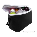 Mochila modelo "Cooler" de poliéster 210D/PU, interior tela aislante gris 12C PEVA, con relleno de esponja PE FOAM de 2mm. Ojetillos reforzados con PU negro. Bolsillo delantero exterior. Tiras de cordón negro.