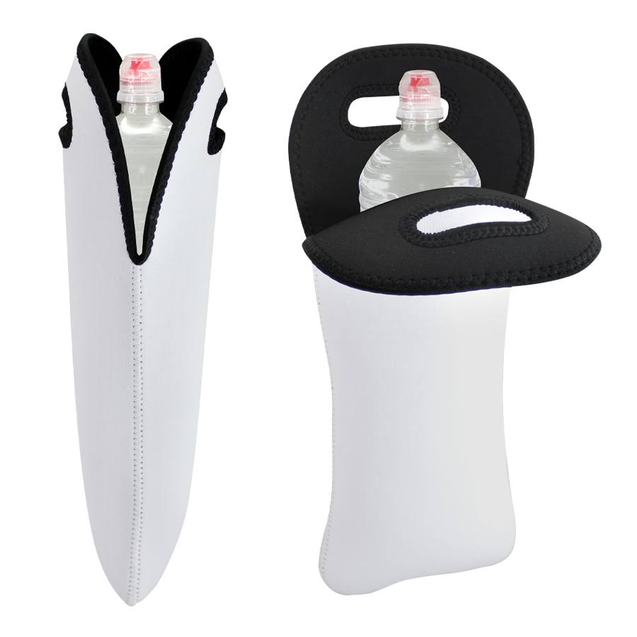 Bolso Porta-Botella con asa, en tela aislante Poly-Neopreno 4mm para Sublimación. Presentación en bolsa de Polipropileno.18 x 39 cm.