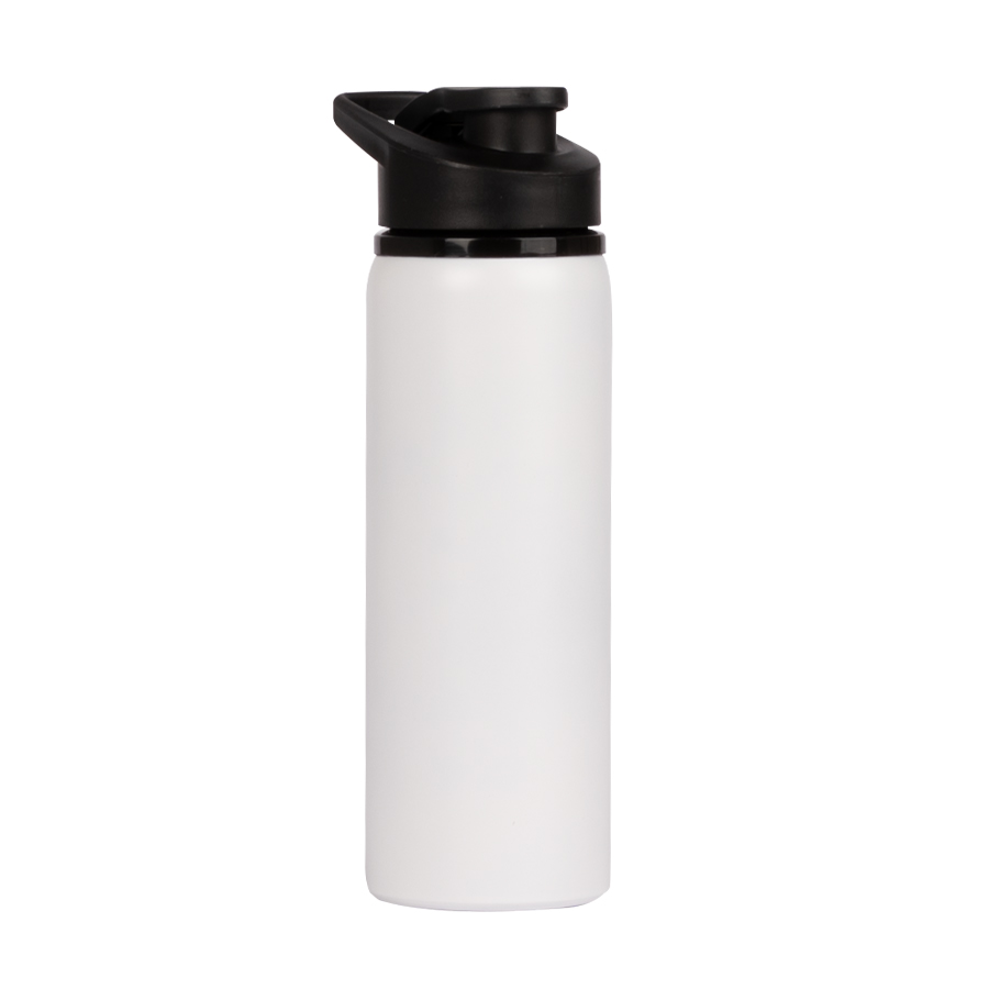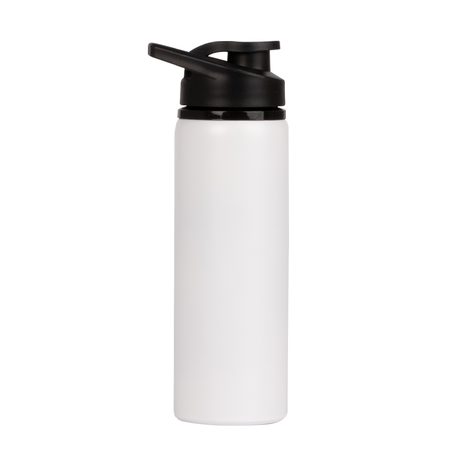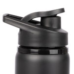 Sport Bottle botella metálica de Acero Inoxidable 304 SS modelo «APIA», con tapa rosca de plástico PP negro, asa de sujeción y anillo de silicona, anti-derrame. Producto BPA FREE, para el contacto con líquidos y alimentos. Capacidad 750ml. Presentación en bolsa PP + caja de regalo de cartón lacado color negro.