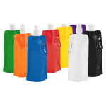 Botella de Plástico PET, con Mosquetón para colgar. Producto libre de BPA. Liviana y flexible, ideal para llevar a cualquier lugar, ya que vacía se puede plegar para transportar incluso dentro del bolsillo.440 cc.12 x 27 cm.