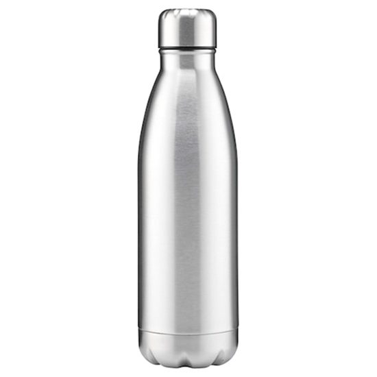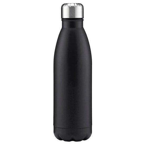 Botella metálica de aluminio con tapa rosca. Capacidad de 600ml. Presentación en caja individual negra. Tamaño: Ø6,6 cms. x 23,5 cms.