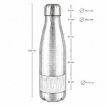 Botella de acero inoxidable SS201 exterior, SS304 interior y tapa rosca metálica. Doble pared térmica. Capacidad de 500 ml. Presentación en bolsa plástica dentro de caja de cartón negra. Acero Inoxidable SS201 exterior y SS304 interior.