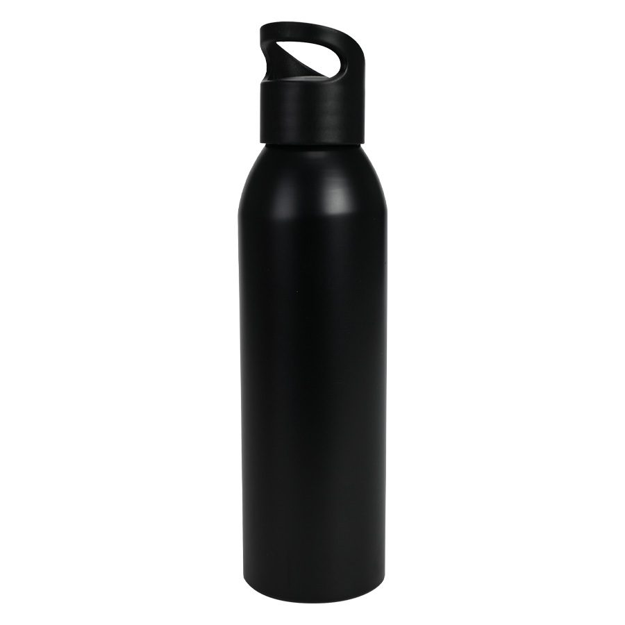 Botella metálica de aluminio con tapa rosca. Capacidad de 600ml. Presentación en caja individual negra. Tamaño: Ø6,6 cms. x 23,5 cms.