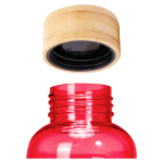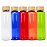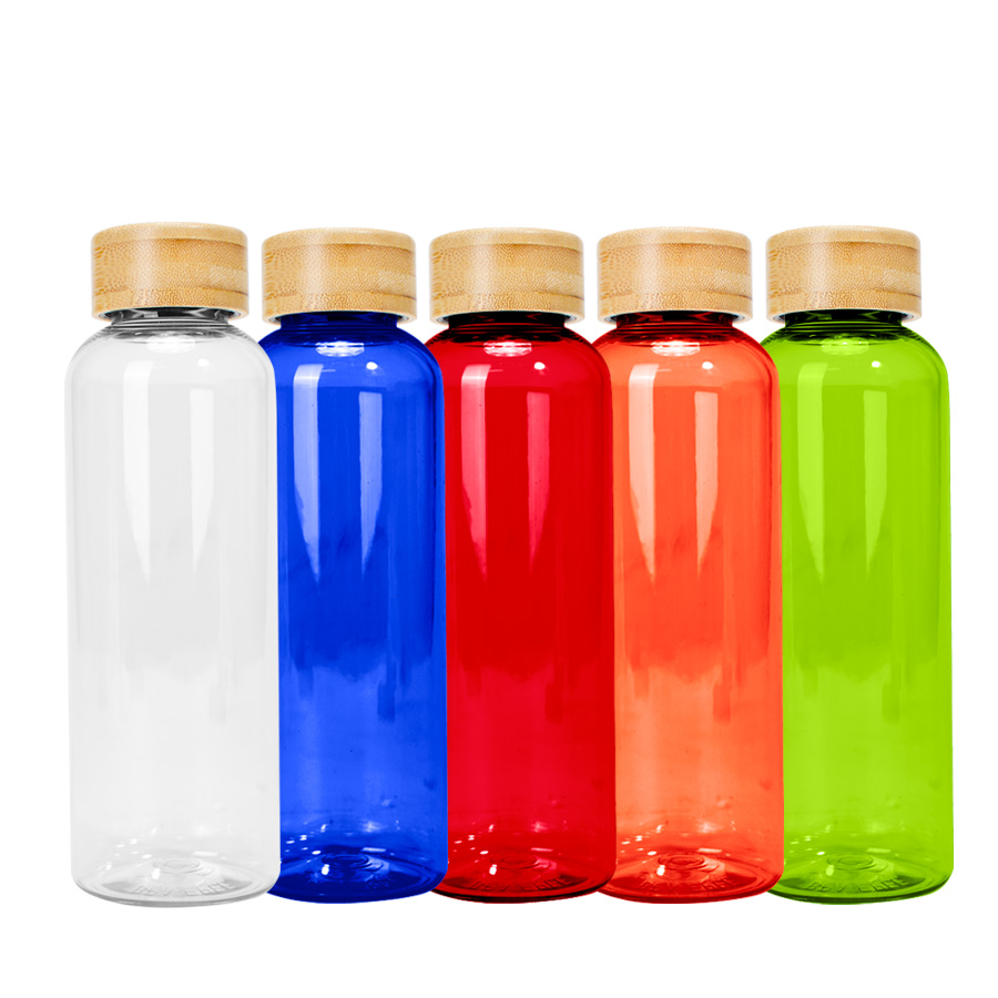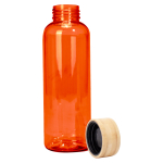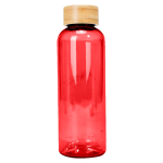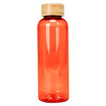 Botella plástica PET color translúcido, con tapa redonda twist-off de Bamboo, modelo «AINOA». Producto BPA FREE, para el contacto con líquidos y alimentos. Capacidad 550ml. Presentación en bolsa OPP + caja de regalo de cartón kraft. D6.6 x H20 cm.