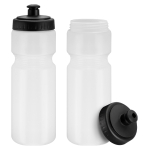 Botella Plástica deportiva de 700cc. Sólo para líquidos fríos. Contiene una cintura ideal para la mayoría de los porta-botellas de bicicletas. Boquilla ajustable de silicona negra, que evita la filtración de líquido y entrega mayor duración de uso. Material plástico reciclado LDPE, libre de BPA. Presentación en bolsa de polipropileno transparente con orificio para ganchera.