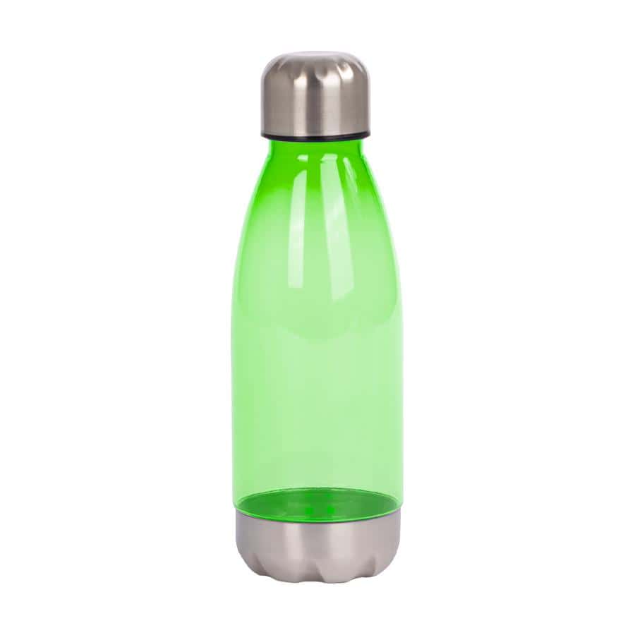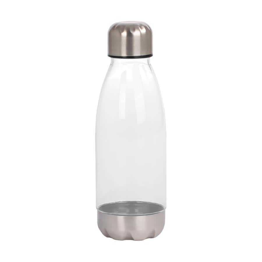Botella plástica de Acrilonitrilo Estireno (AS) color translúcido, con fondo y tapa de Acero inoxidable, modelo «AS». Producto BPA FREE, para el contacto con líquidos y alimentos. Capacidad 500ml. Presentación en bolsa OPP + caja de regalo de cartón negro.