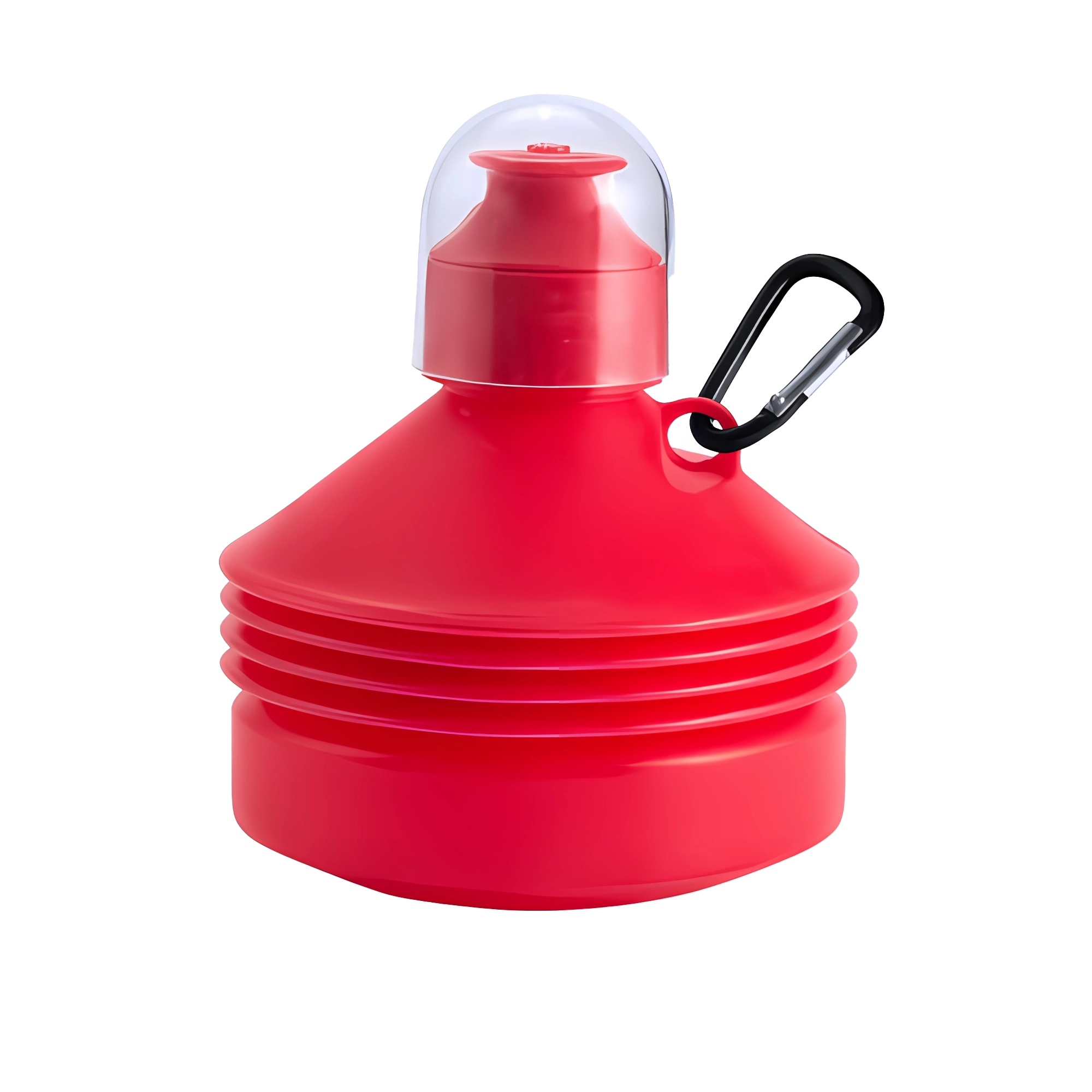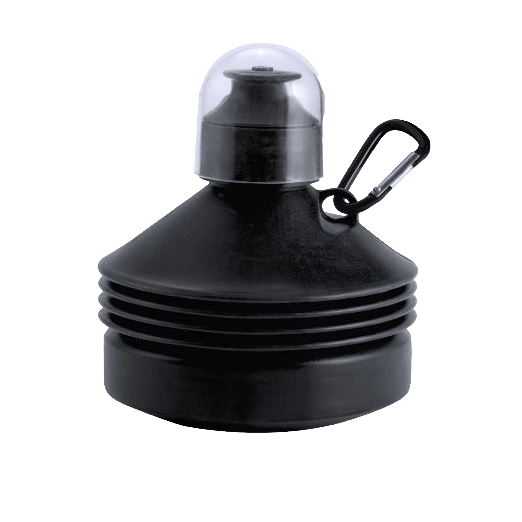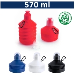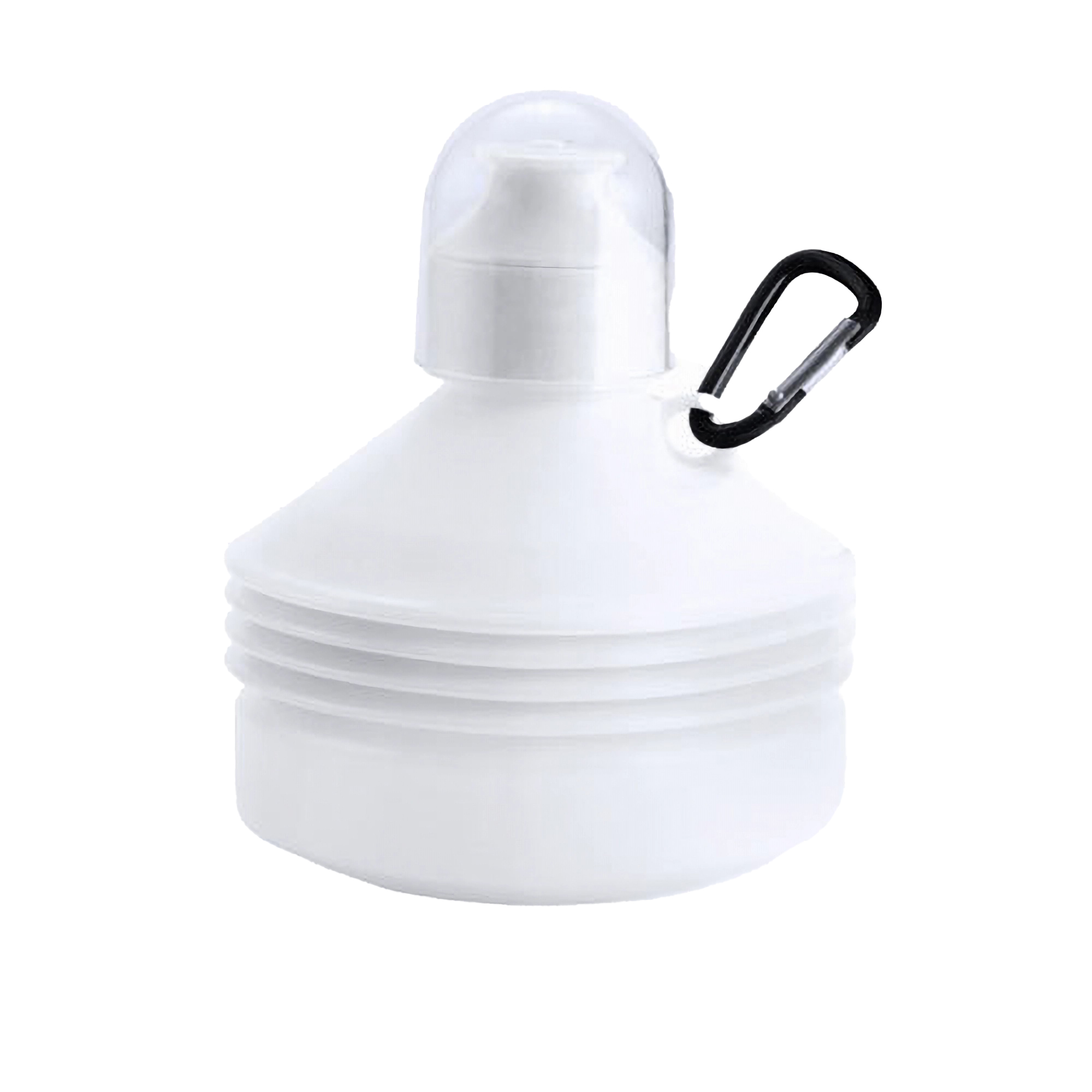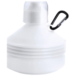 Bidón plegable de 570 ml de capacidad con cuerpo ergonómico acabado en PE de Color Blanco. Dosificador de seguridad con capucha de cierre y mosquetón metálico de transporte.Ø9,3 cms. x 18,5 cms.