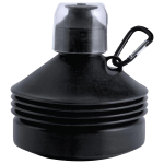 Caramayola plástica con tapa gancho mosquetón. Presentación en caja individual negra. Capacidad de 750ml. Tamaño: Ø7 cms. x 25,5 cms.