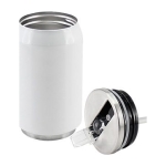 Botella Térmica Blanca de doble pared aislante modelo “Can”, interior de acero inoxidable. Base y Tapa rosca metálica con dosificador. Cobertura exterior con polímero especial marca ORCA COATINGS(R) para una sublimación de primera calidad. Cada unidad se entrega dentro de su caja individual de cartón blanco.350 cc.