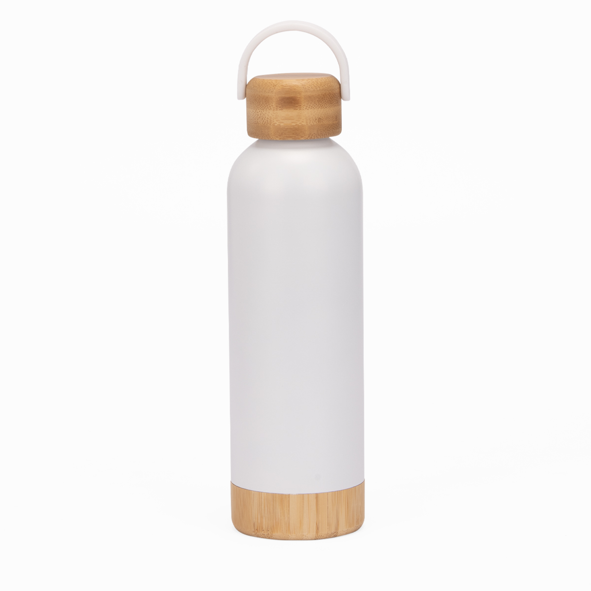 SIBERIA es una botella térmica de acero inoxidable reciclado, diseñada para acompañarte en cualquier clima con estilo y responsabilidad. Su capacidad de 550 ml y su aislamiento de doble pared mantienen la temperatura de tus bebidas por más tiempo. El cuerpo plateado se complementa con una elegante manga de bambú, aportando un detalle cálido y natural que contrasta con su acabado metálico. Su tapa de acero enroscable refuerza la seguridad y la estética. SIBERIA es ideal para marcas que buscan destacar con un mensaje de compromiso y diseño atemporal.