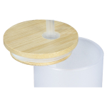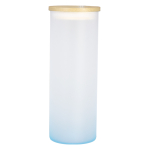 Botella de Vidrio Borosilicato para Sublimación, para líquidos fríos, con tapa de Bamboo y bombilla plástica empavonada. Capacidad 620ml. Presentación bolsa plástica empavonada + caja de cartón blanco. Calidad Premium ORCA. Tamaño: D6.9 x H18.2 cm.