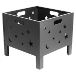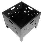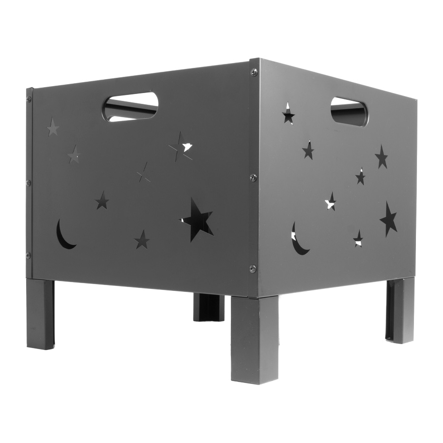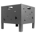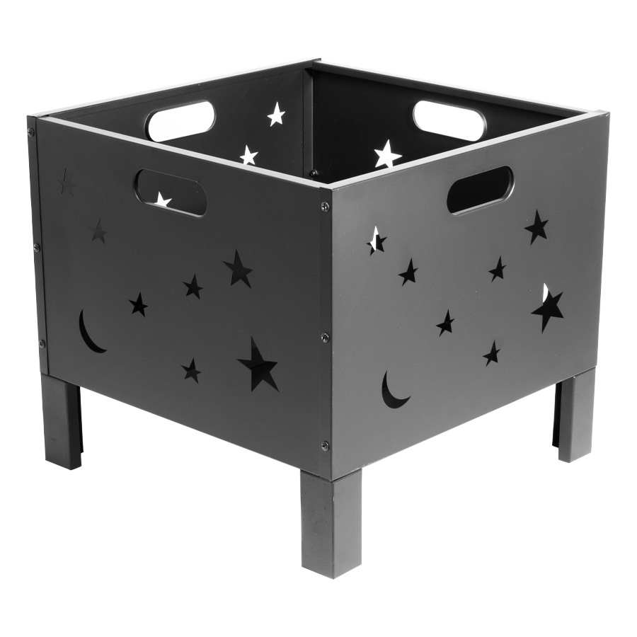Brasero para Leña o Carbón, de Acero negro, modelo «Constelación». Bowl para fuego: 50 x 50 x 33cm x 10.6mm. Fácil de armar y transportar. Incluye Manual instructivo de armado en español. Tamaño: 50 x 50 x 45 cm.