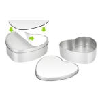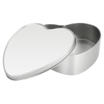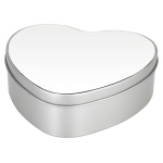 Caja Metálica con forma de Corazón, con tapa y cubierta blanca para Sublimación. Presentación en bolsa de Polipropileno + caja de cartón forrado color natural. Ideal para usar como joyero, especiero o guarda-accesorios. Un regalo práctico y delicado para cualquier mujer. 15 x 13.7 x 4.5 cm / Cubierta Corazón para Sublimar 14.5 x 13.2 cm.