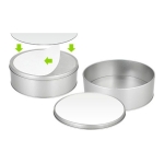 Caja Metálica redonda, con tapa y cubierta blanca para Sublimación. Presentación en bolsa de Polipropileno + caja de cartón forrado color natural. Ideal para usar como joyero, especiero o guarda-accesorios. Un regalo práctico y delicado para cualquier mujer. Ø 15 x 5 cm / Cubierta Redonda para Sublimar Ø 14.75 cm.