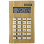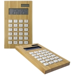 Una calculadora de bamboo/bambú única. La calculadora Bamboo tiene pantalla de 12 dígitos y funciona con luz solar. Presentación en caja de cartón kraft.