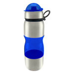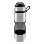 Botella de acero inoxidable con tapa rosca y dosificador. Capacidad de 750ml.Incluye silicona antiderrame. Presentación en caja de cartón negra. Caja de 50 unidades.