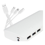 Cargador Power-Bank USB de 13000mAh, con indicador de carga y Linterna LED. Capacidad 13000mAh. Input: DC 5V 2A / Output: DC 5V 1A*3. Incluye set de cables de carga USB. Presentación en Estuche de cartulina blanca.Tamaño: 6.5 x 14.2 x 2.2 cm