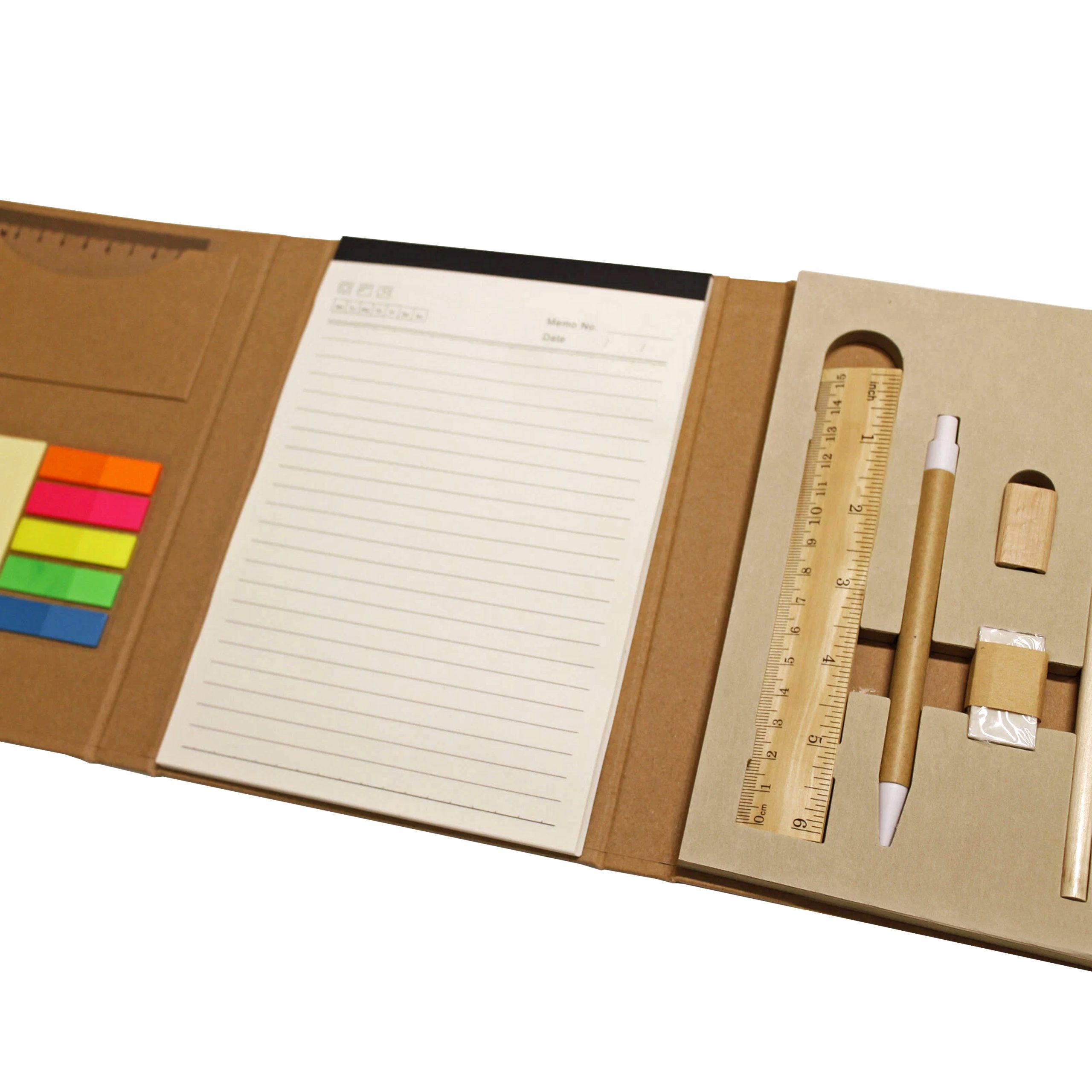 Regalar una carpeta ecológica personalizada, que incluye regla, goma, bolígrafo y lápiz mina, fortalece la imagen de marca al demostrar un compromiso real con la sostenibilidad. Es un regalo promocional útil, moderno y funcional que refuerza relaciones con clientes y colaboradores, asegurando alta visibilidad y una percepción socialmente responsable. Fortalece lazos con clientes y colaboradores al ofrecer un regalo útil y significativo. Combina materiales ecológicos con un diseño funcional, mejorando la percepción de la marca